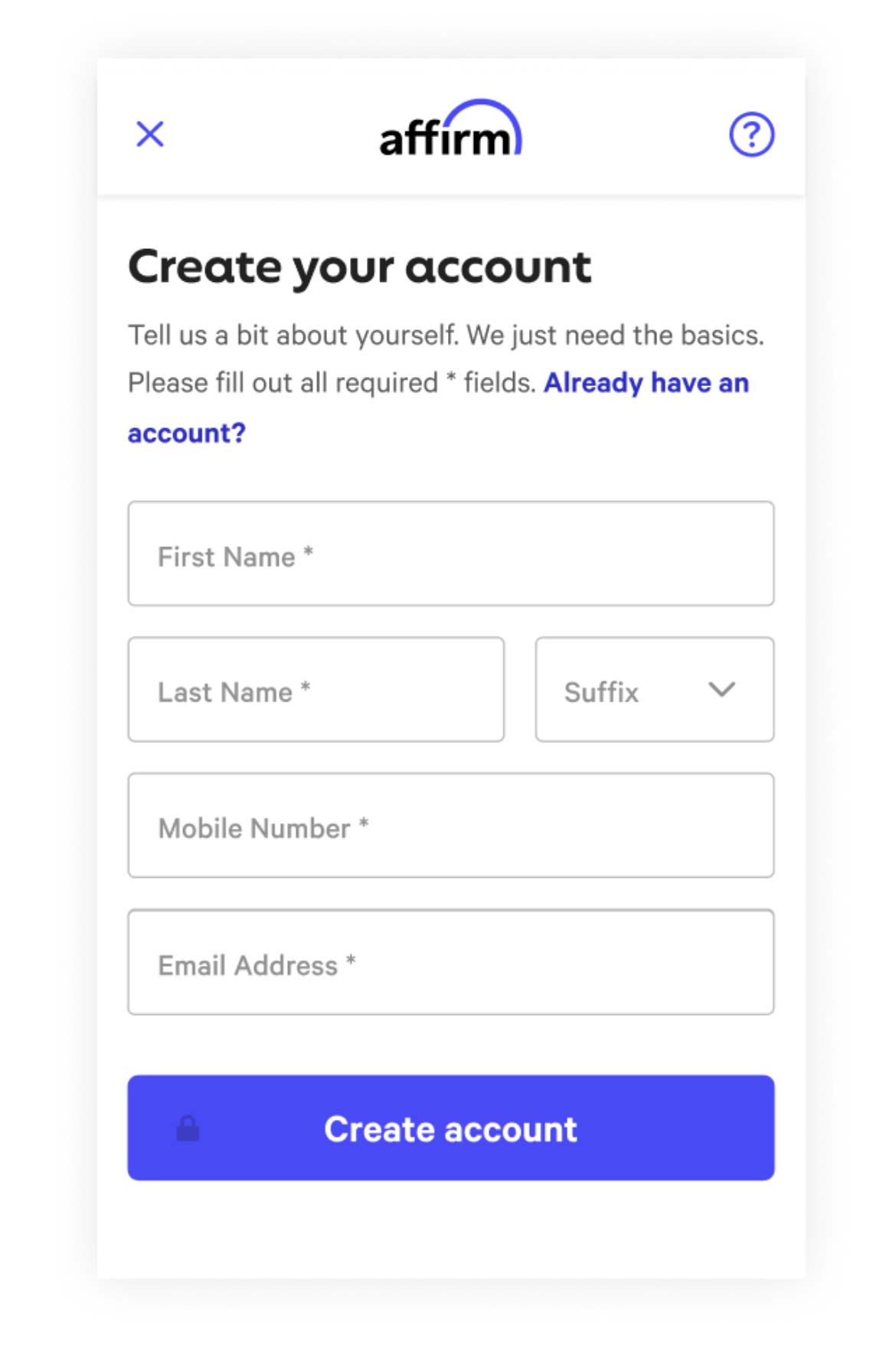 territories. This helps Affirm verify it’s really you who is creating your account and signing in.