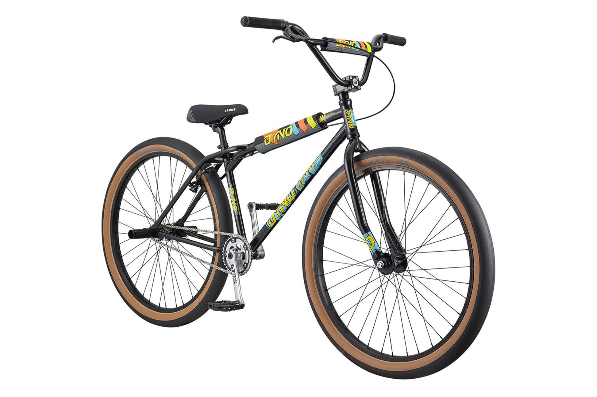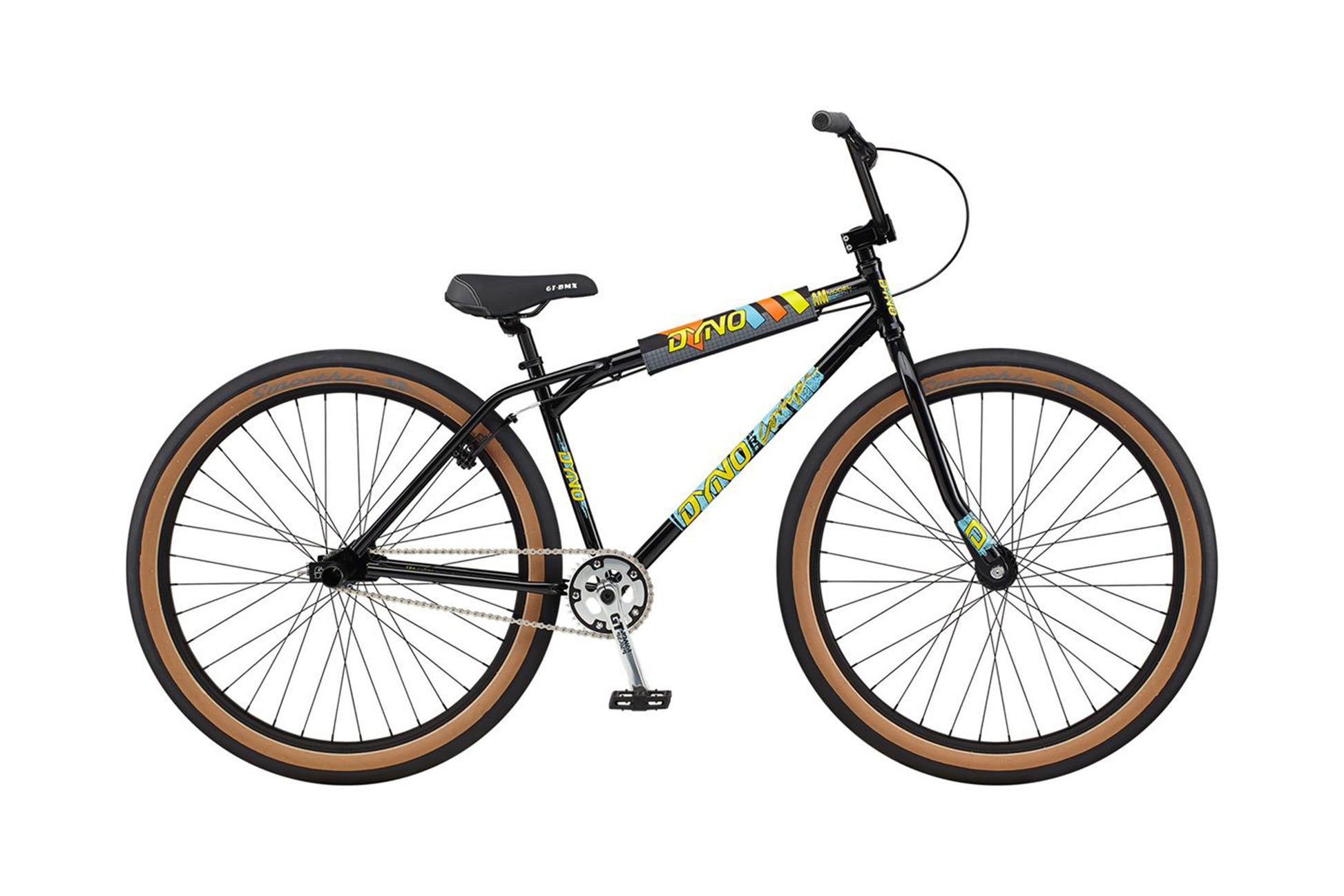 The 2021 GT Dyno Pro Compe Heritage 29" BMX Bike brings back classic designs on big wheels for the ultimate comfortable ride that is sure to get looks of admiration. Don't let the old look fool you, though. The Dyno Pro Compe Heritage is packed with modern technology such as sealed bearings in the headset and bottom bracket and chromoly used in the frame, forks, and spindle of the cranks for strength and durability. Throw in the awesome color, graphics, and toptube pad and it is obvious why the 2021 GT Dyno Pro Compe Heritage is such a rad bike.