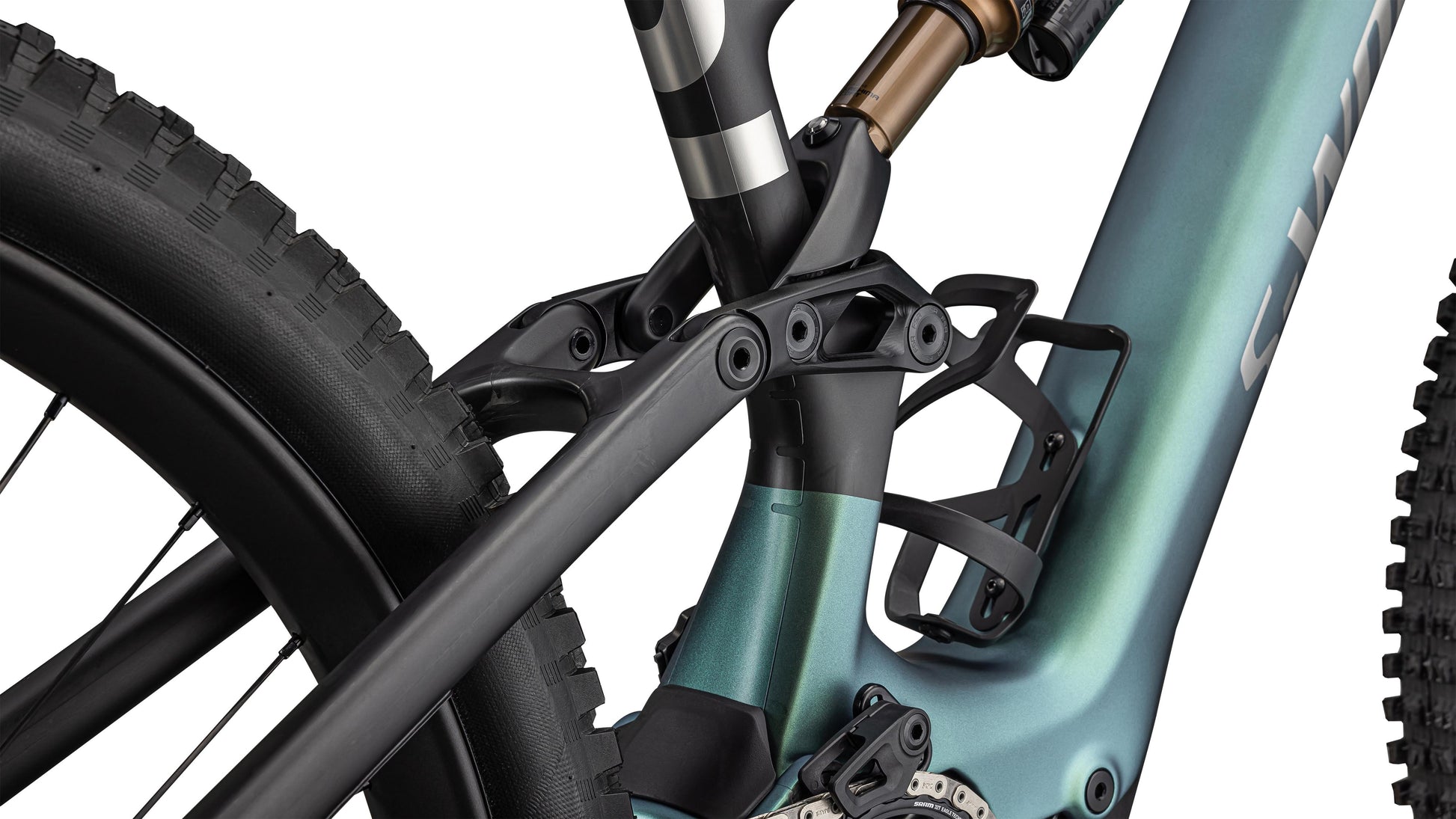 A 29” front wheel ensures stability and surefooted performance in the most hectic terrain, while a 27.5” rear wheel allows for a compact chainstay and super responsive behavior. If you prefer the rolling and traction benefits of a 29” rear wheel, just flip the pivot link chip and mount the big wheel.