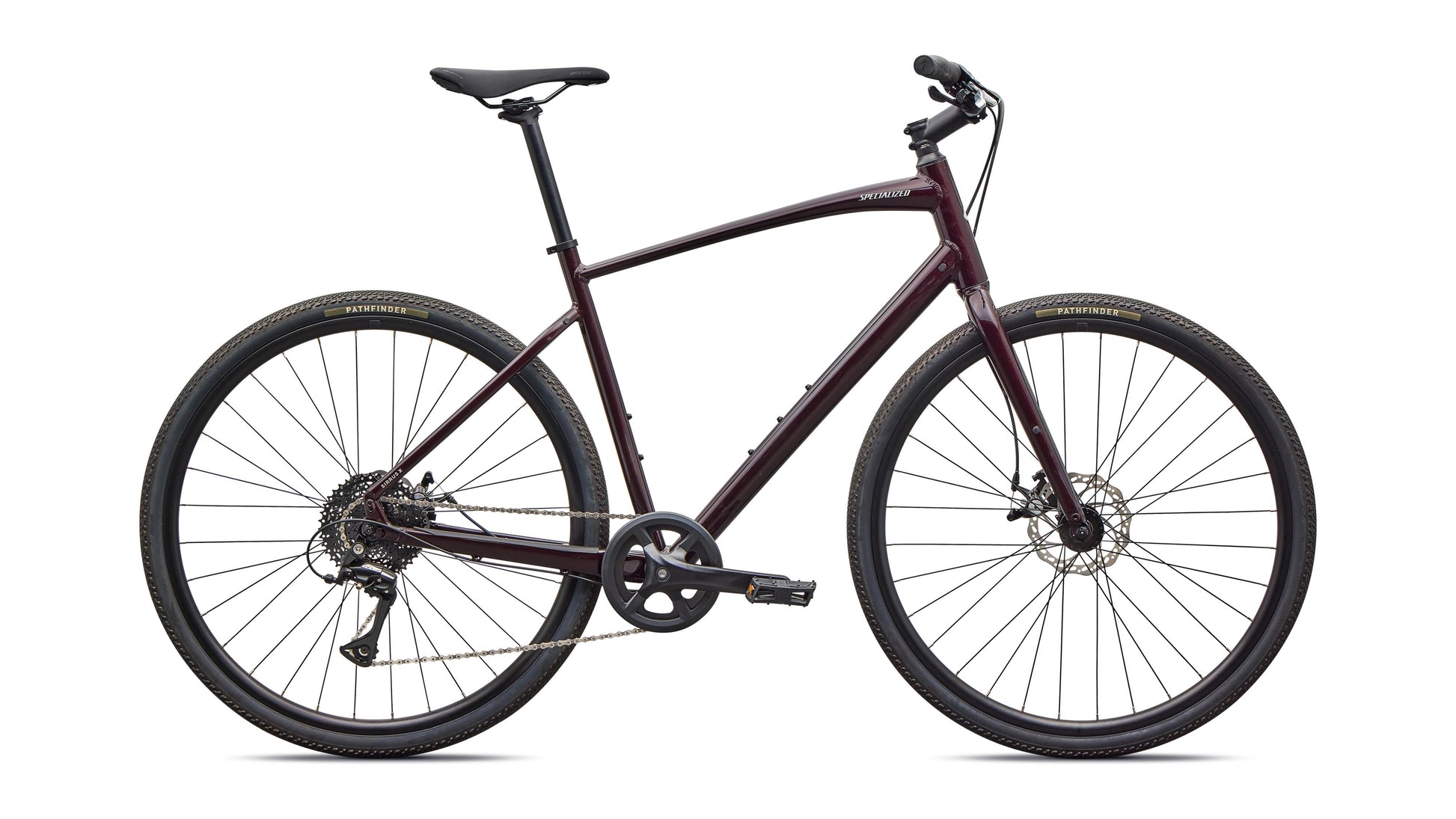 | Frame | Specialized A1 Premium Aluminum, Fitness Geometry, butted tubing, internal cable routing, flat-mount disc, quick-release, Plug + Play rack/fender mounts |