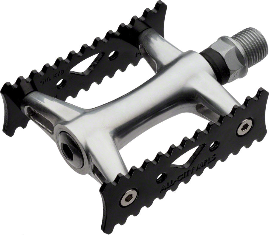 All-City Wallner Pro Pedals. Great for clips and straps and functions equally well as a high-quality strapless platform. The teeth give a nice bite without being overly aggressive, and the sealed bearings will provide years of smooth service. It has some cool touches too, such as the threaded toe clip mounts, which keep your clips from coming loose.- All-City Wallner Pro Pedals. Great for clips and straps and functions equally well as a high-quality strapless platform. The teeth give a nice bite without being overly aggressive, and the sealed bearings will provide years of smooth service. It has some cool touches too, such as the threaded toe clip mounts, which keep your clips from coming loose.
