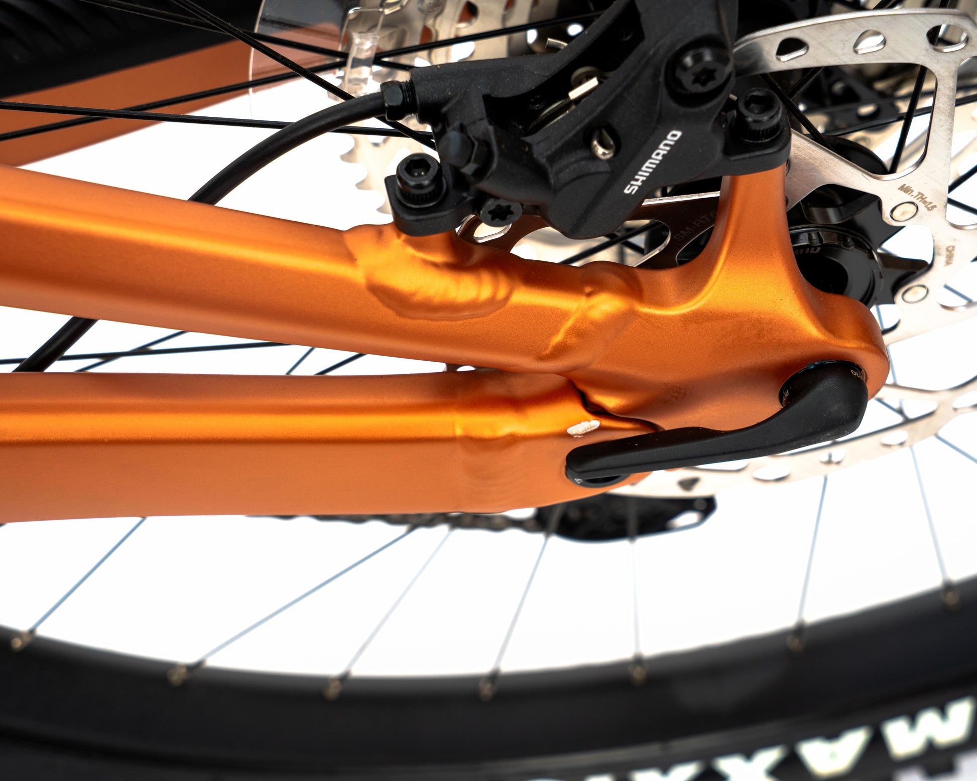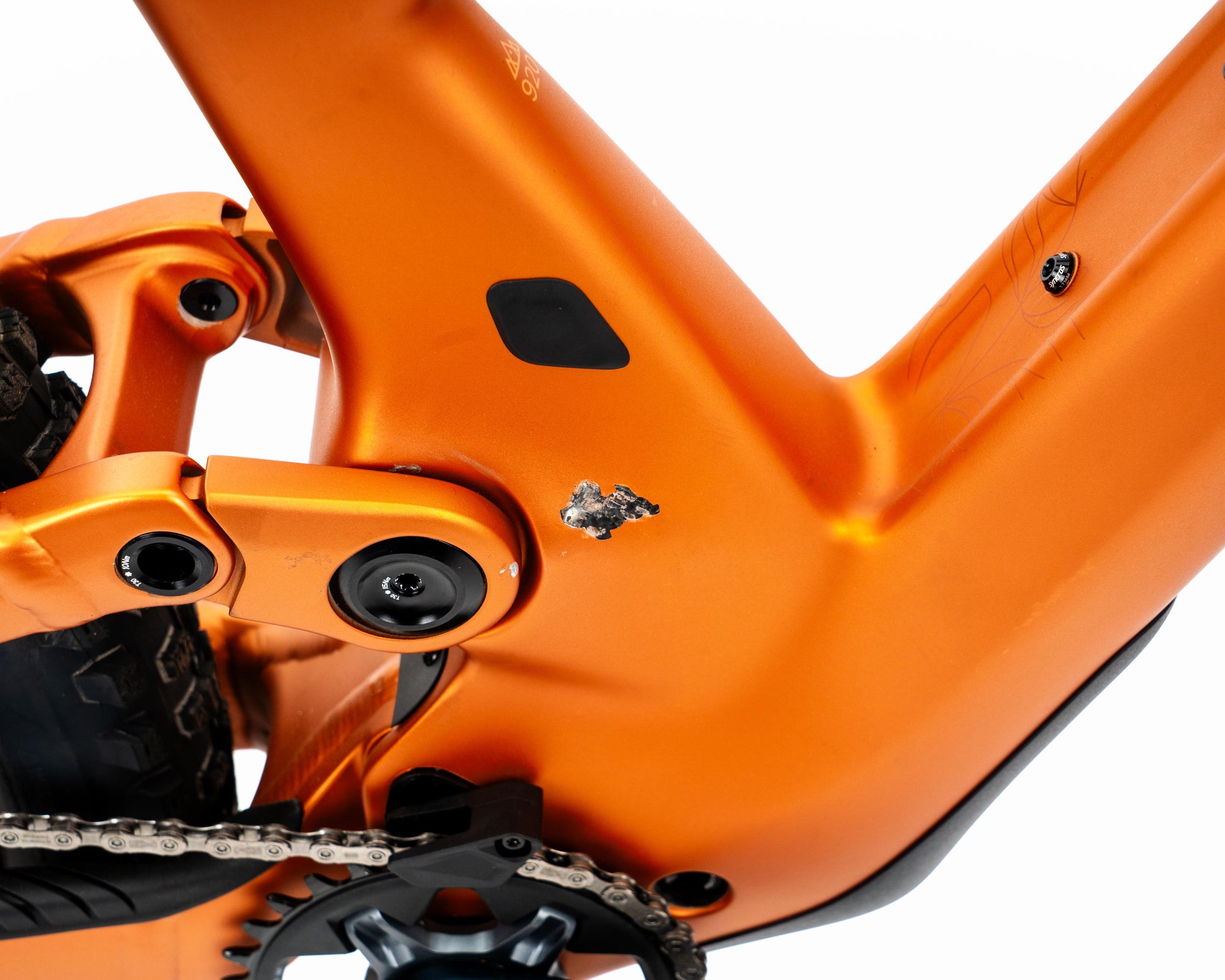 - Paint chips on top of seat stay swing arm