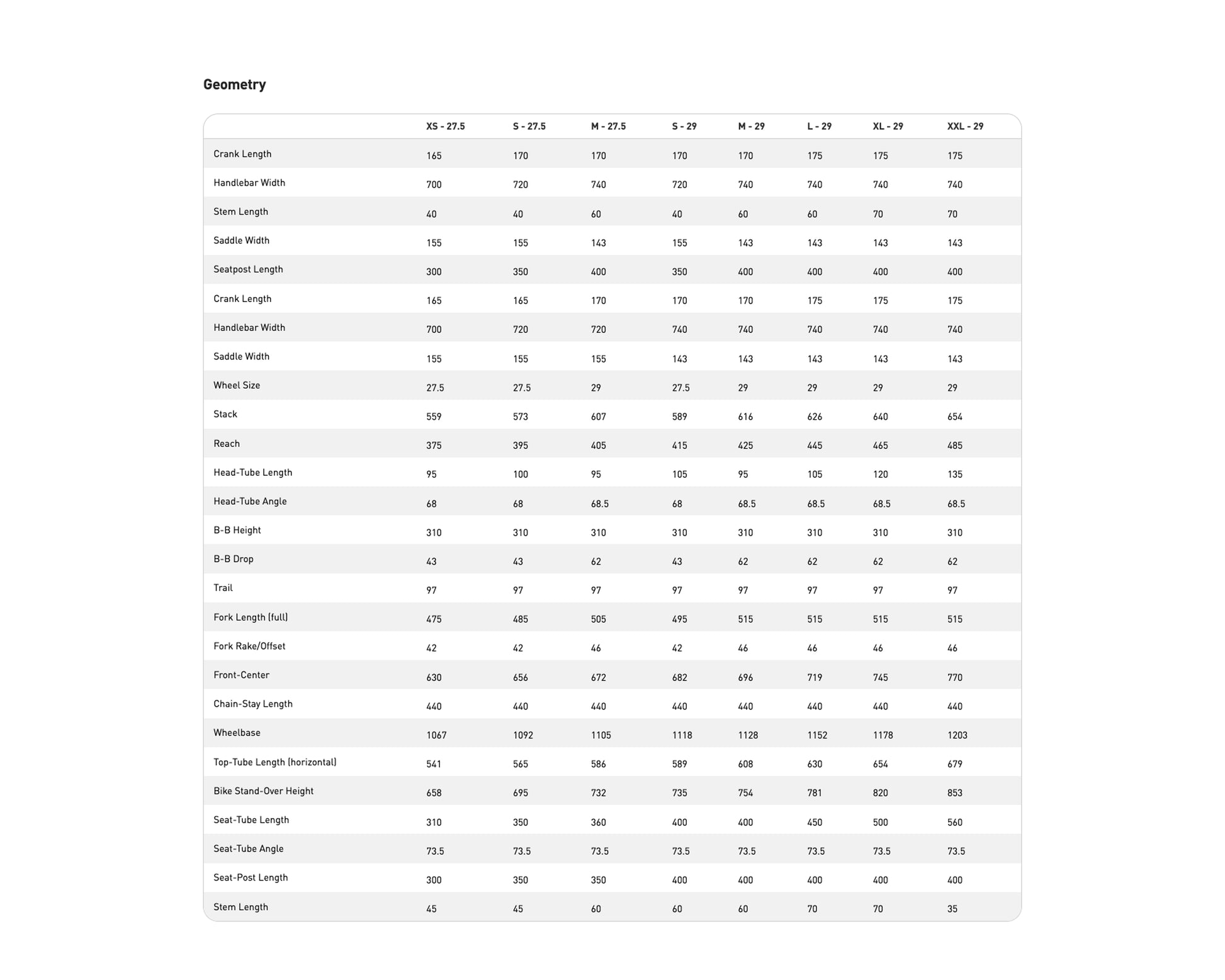 | Fork | SR Suntour XCM 29, 30mm stanchions, Rx Tune, coil spring, QR, 90/100mm travel (size-specific), 42mm offset |