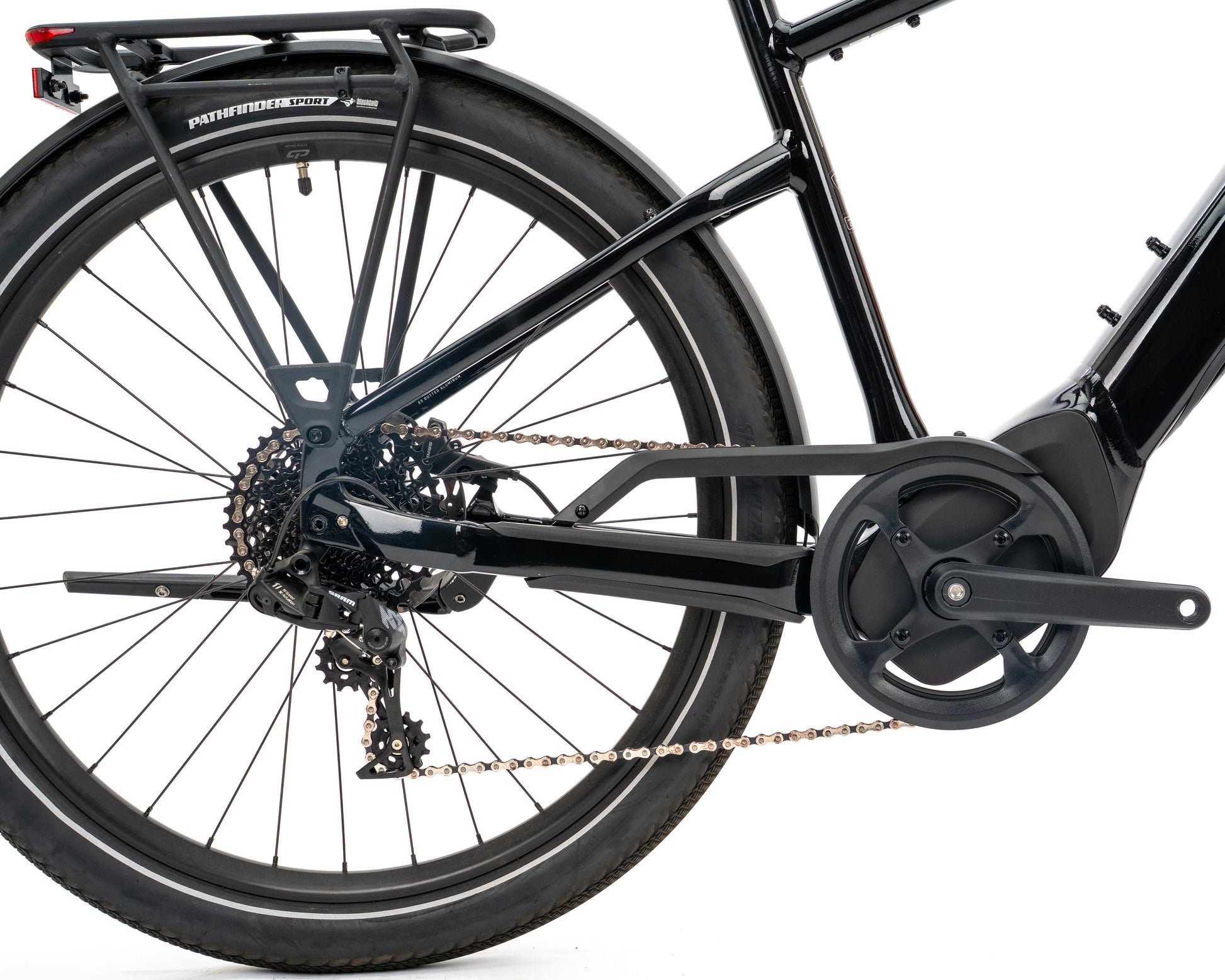 - Equipped with DRYTECH Fenders, LED front and rear lights, and 27kg capacity rear HD Rack. The rear rack is compatible with child bike seats, and the bike is also rated to pull a thru-axle trailer.