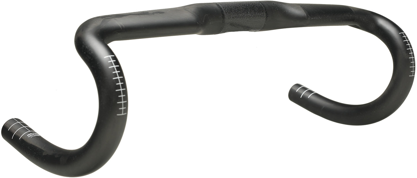 The AB09 is Cervelo's upgraded aero road handlebar, first used on the on the S-series aero road bikes. Made with UD carbon, and a mild top aero profile, the AB09 is both stiff under load and comfortable, with excellent hand and lever positioning. It is fully Di2 compatible with internal routing and sets-up well with any of todays' road lever designs. A compact design with an effective 120mm drop and 80mm reach, the AB09 hits the sweet spot of room and proximity for fast and safe hand transitions.