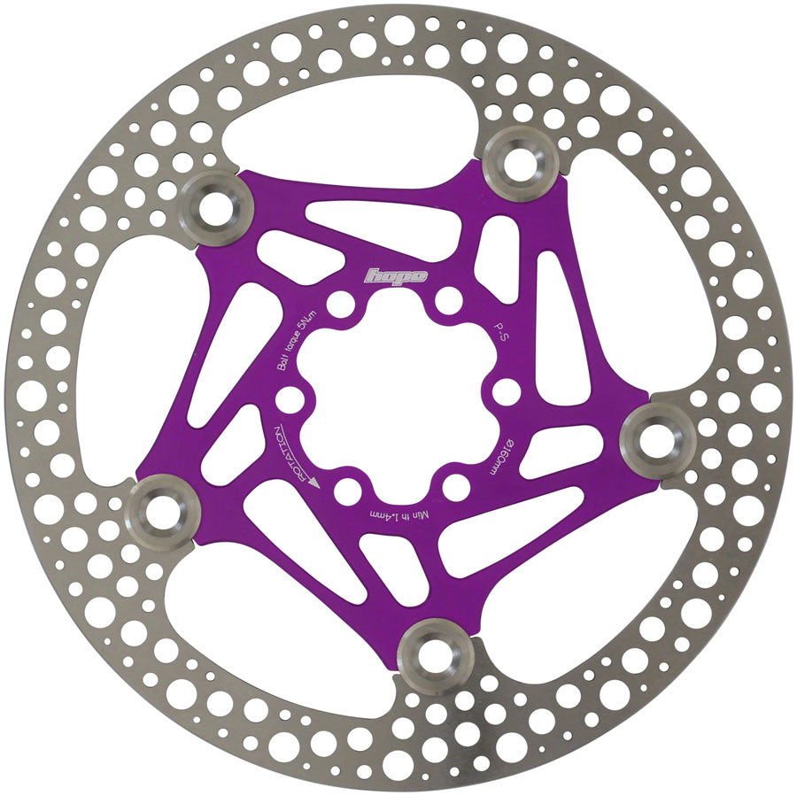 The Hope Floating Road Disc Rotor features a round edge braking surface and is machined with a radius on the inner and outer edge. The 2-piece floating design aids in heat management.- The Hope Floating Road Disc Rotor features a round edge braking surface and is machined with a radius on the inner and outer edge. The 2-piece floating design aids in heat management.