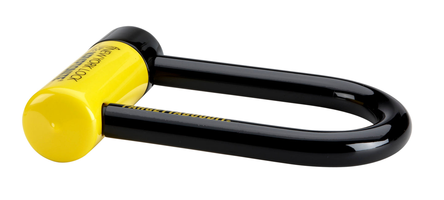This lock is the highest security Kryptonite U-lock available, featuring a 16mm Kryptonium steel with double deadbolt design.