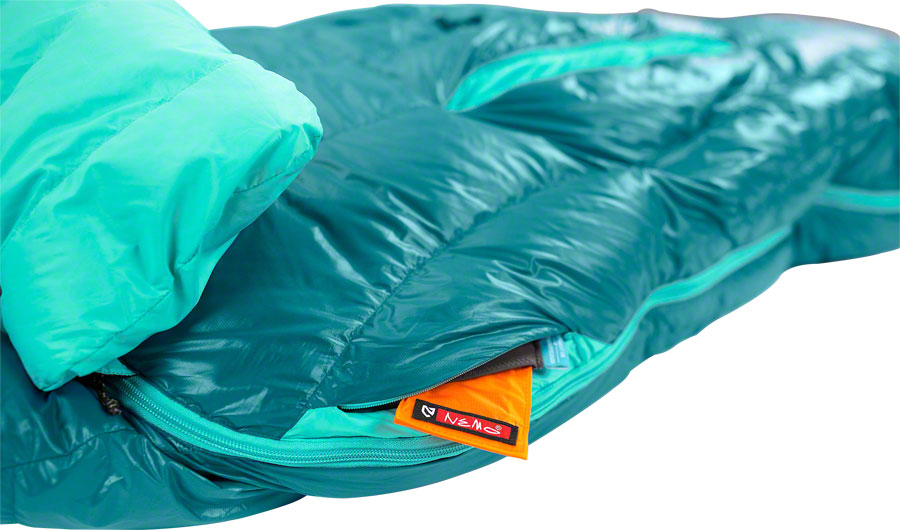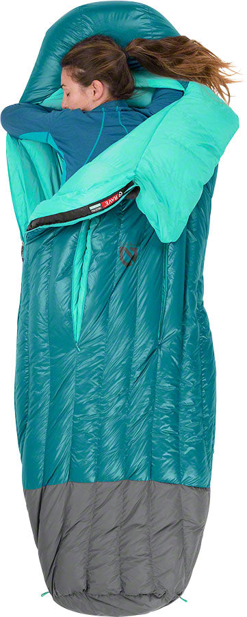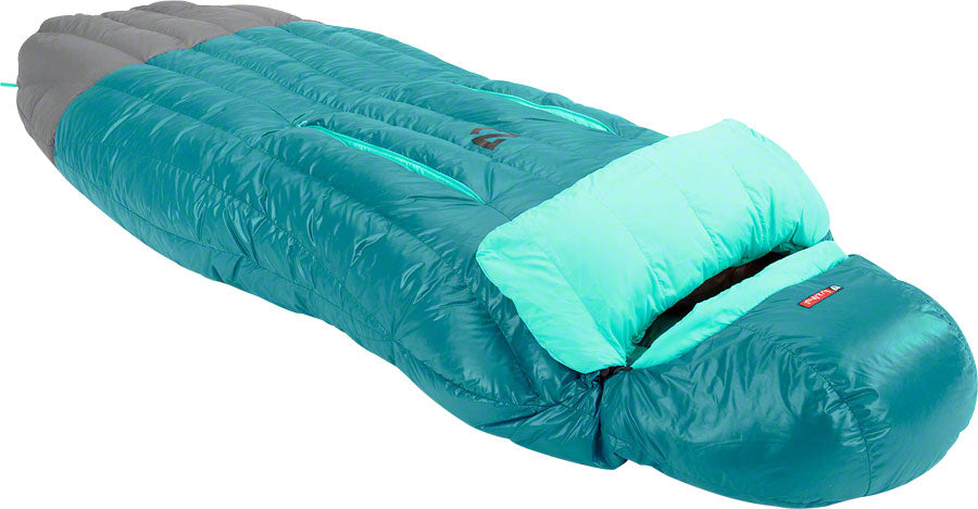 • A women's specific down-filled spoon-shaped sleeping bag featuring Thermo Gills for the optimal temperature management.