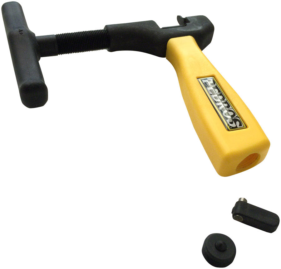 The third edition of the Pro Chain Tool blends the efficient and ergonomic design of the new Apprentice Chain Tool with innovations from our patented Tutto Multi Chain Tool. Features include Pedro's patented retracting pin guide (RPG) for superior functionality and reliability, peening bit and backer for installation of Campagnolo 11 and 12 speed chains, and integrated guide pin sheet slot to quickly remove guide sections from installation pins. Fits single speed through 12 speed chains.- The third edition of the Pro Chain Tool blends the efficient and ergonomic design of the new Apprentice Chain Tool with innovations from our patented Tutto Multi Chain Tool. Features include Pedro's patented retracting pin guide (RPG) for superior functionality and reliability, peening bit and backer for installation of Campagnolo 11 and 12 speed chains, and integrated guide pin sheet slot to quickly remove guide sections from installation pins. Fits single speed through 12 speed chains.
