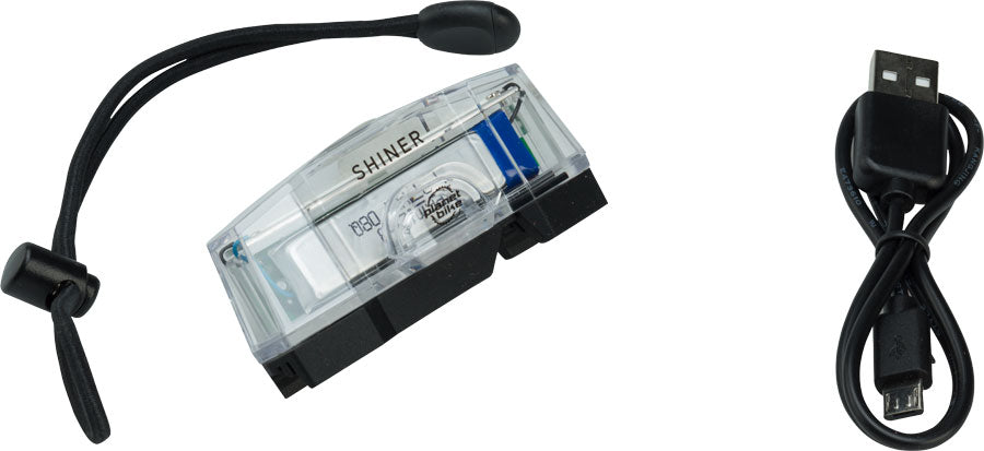 The super bright Shiner headlight adds streamlined visibility whether mounted to your handlebars, helmet, fork blade or head tube.- The super bright Shiner headlight adds streamlined visibility whether mounted to your handlebars, helmet, fork blade or head tube.