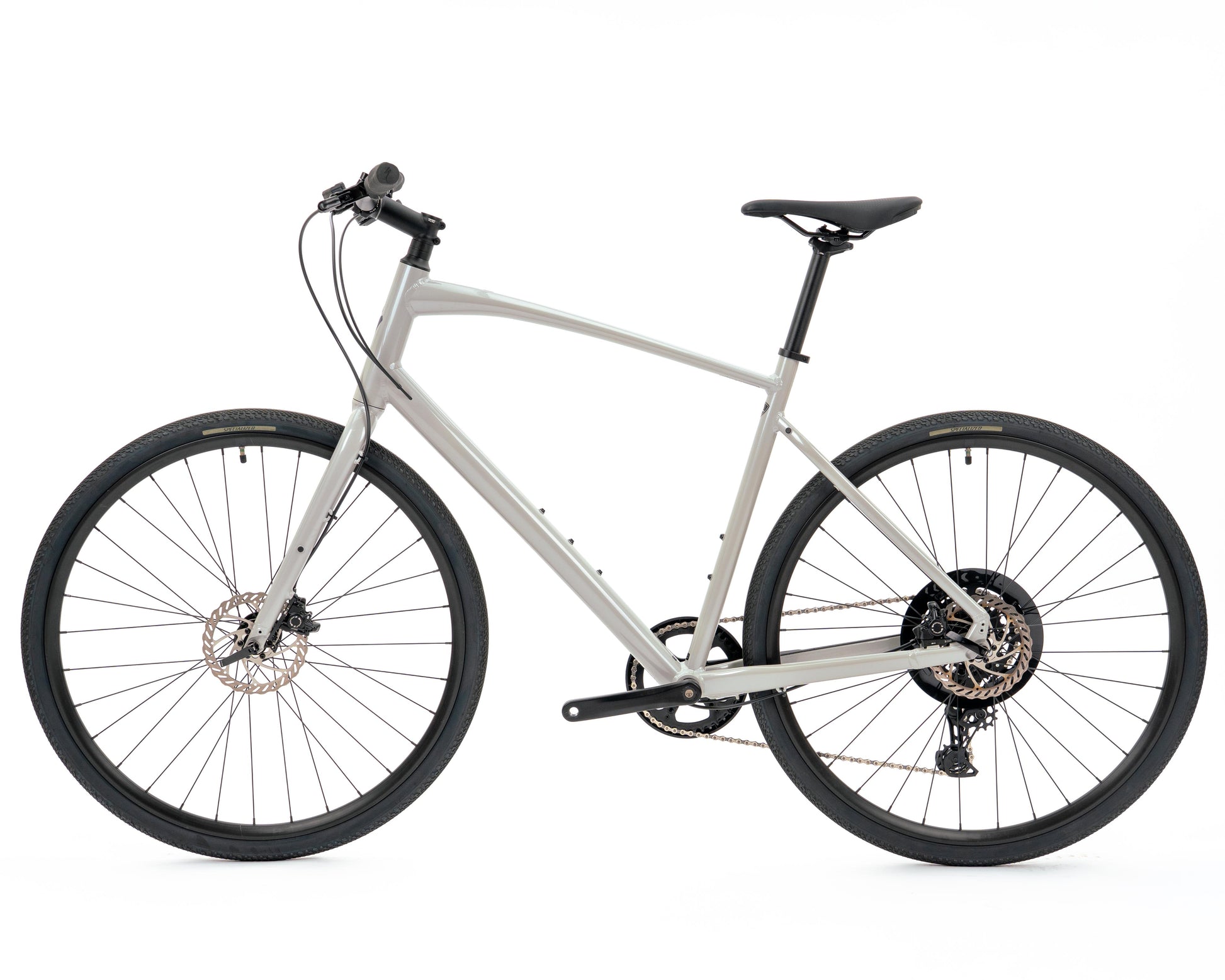 | Frame | Specialized A1 Premium Aluminum, Fitness Geometry, butted tubing, internal cable routing, flat-mount disc, quick-release, Plug + Play rack/fender mounts |