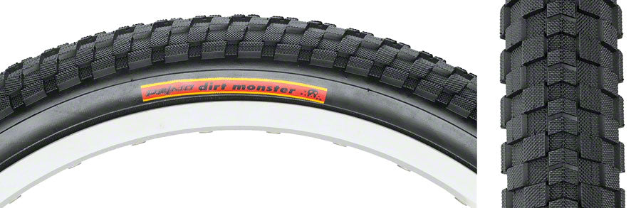 • The Primo Dirt Monster is a great all around BMX tire with a classic knobby tread design that increases traction. Constructed of a soft rubber compound makes it ideal for racing or trail riding, but also has excellent handling for street riding.