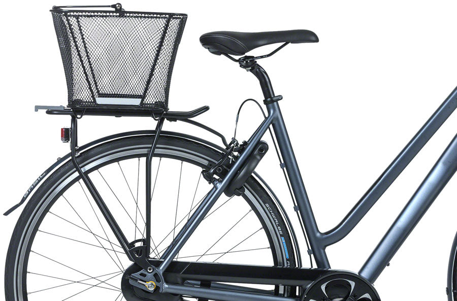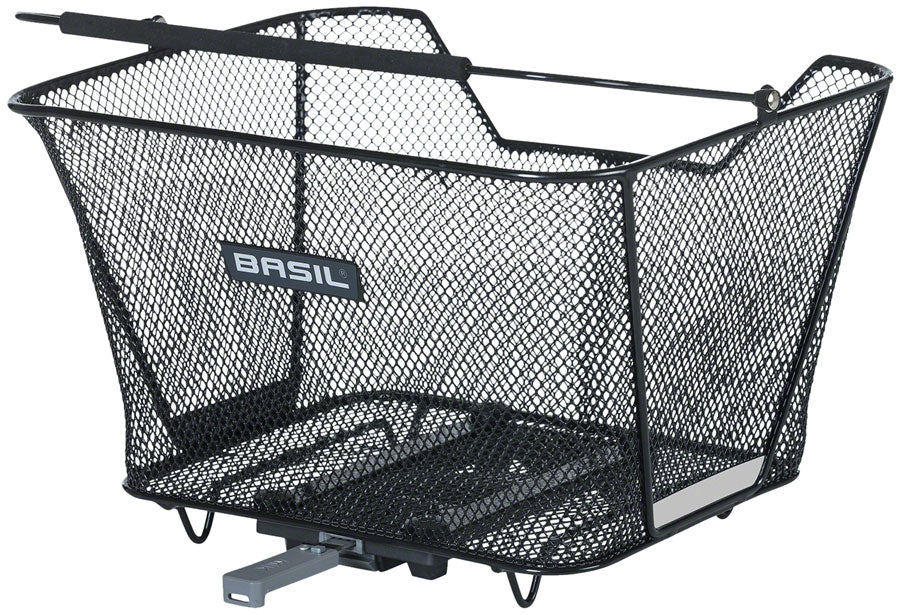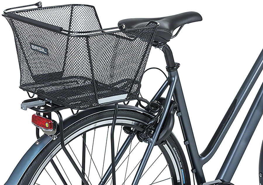 The Basil Lesto MIK rear basket is a handy bicycle basket for the back of your bicycle. The black basket is modern, indispensable and comes with a pre-assembled MIK adapter plate.