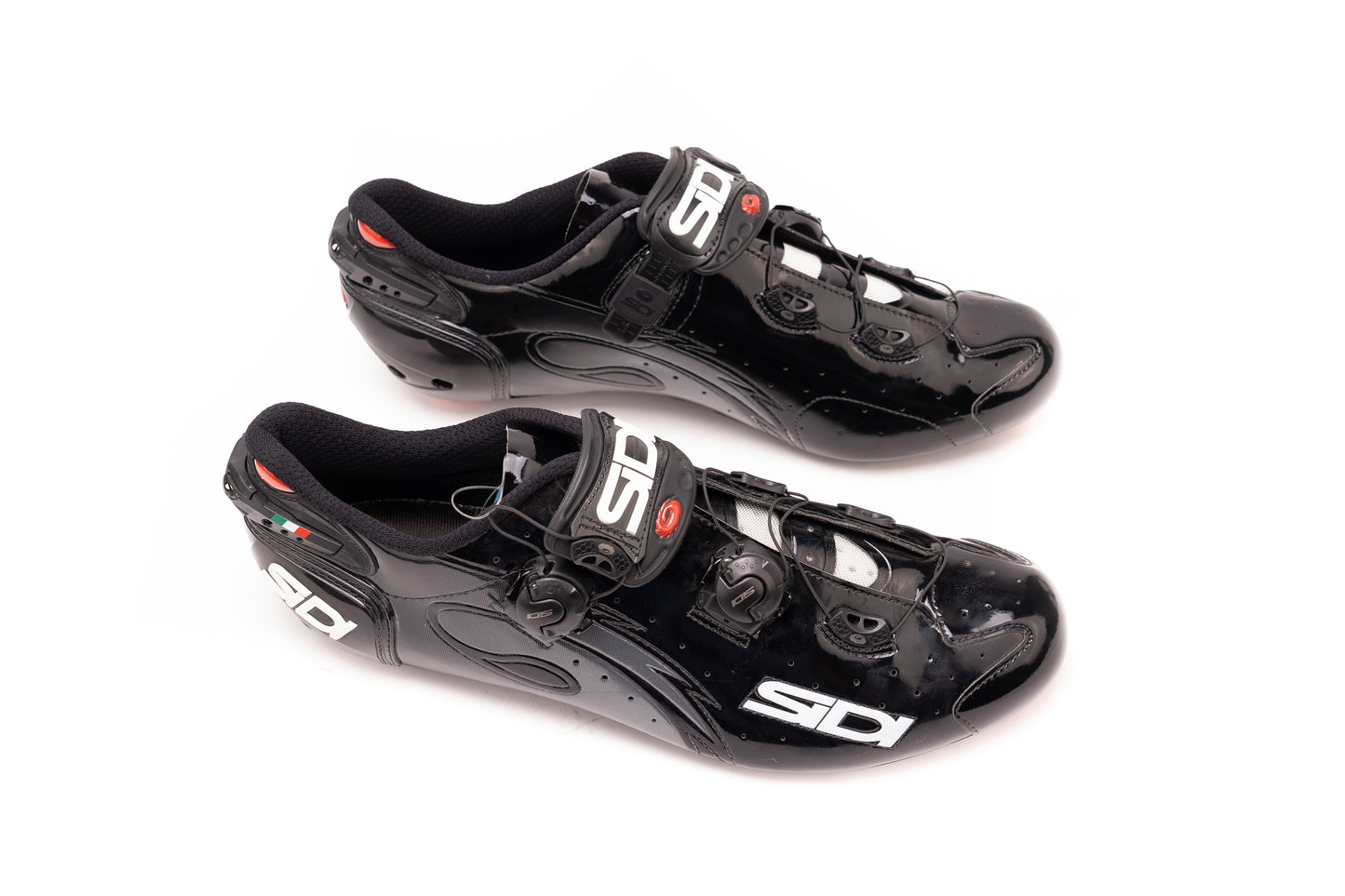 The Sidi Wire Carbon Vernice shoe is a top of the range road cycling shoe packed full of Sidi’s highest-level technology and is made using cutting-edge manufacturing techniques combined with state of the art materials. Featuring a super-stiff Vent Carbon Sole the Vernice provides superior power transfer through to the pedals while the soles include integrated, adjustable vents to help with heat dissipation during the hotter months of the year and feature a standard 3-hole drilling pattern that is compatible with the majority of pedal systems including the Shimano SPD-SL and the Look Keo. Off the bike an anti-slip polyurethane toe and replaceable heel inserts make walking easier and safer.