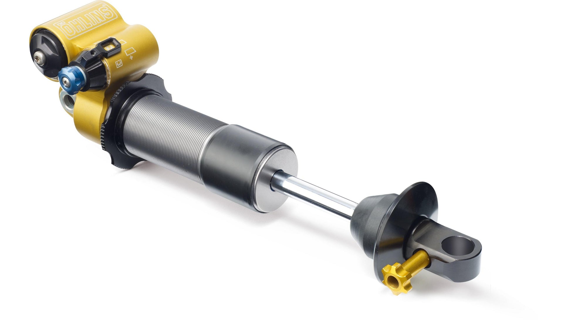- External adjustments for high-speed compression (3-level), low-speed compression (16-click), and rebound damping (7-click).