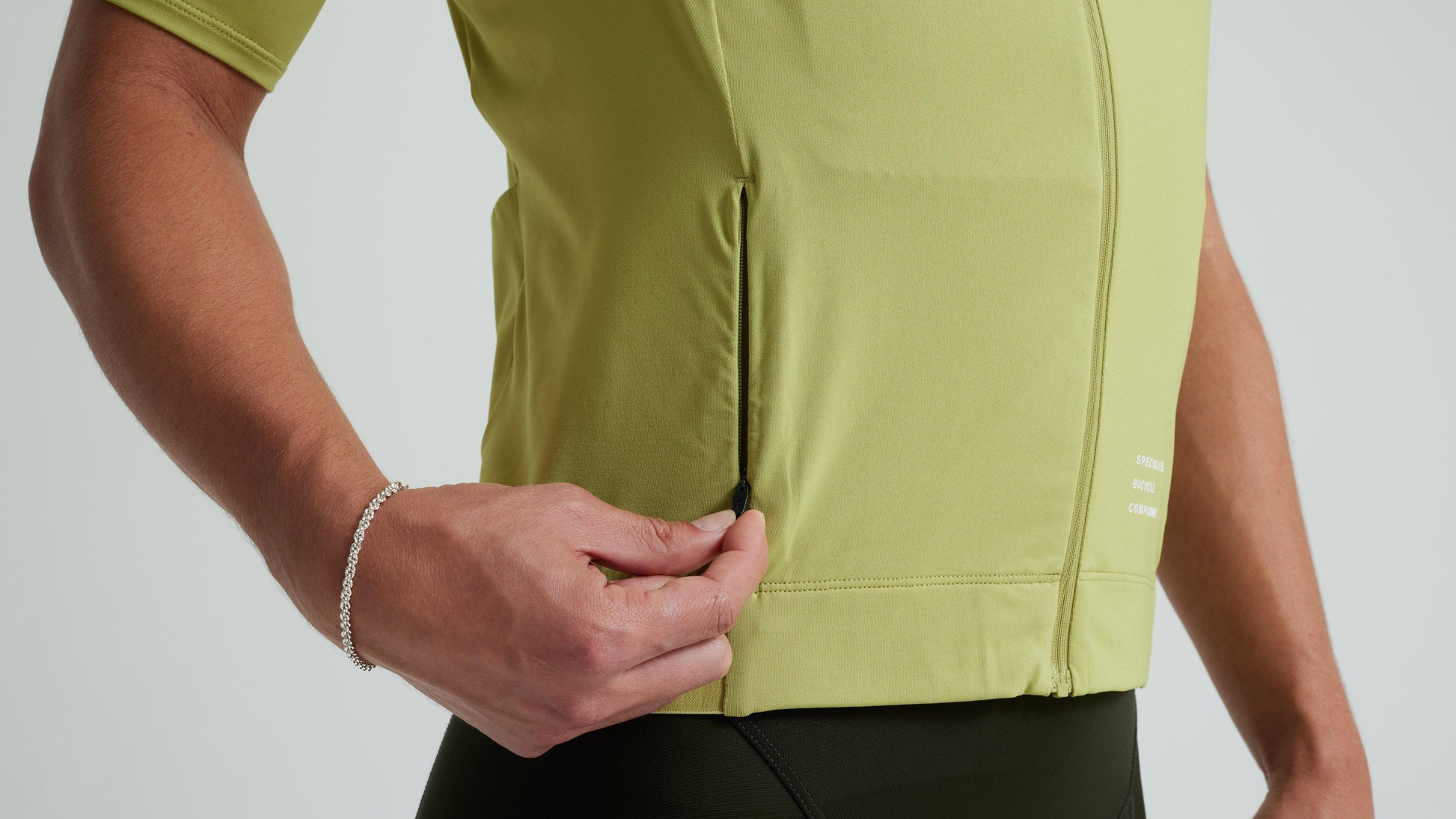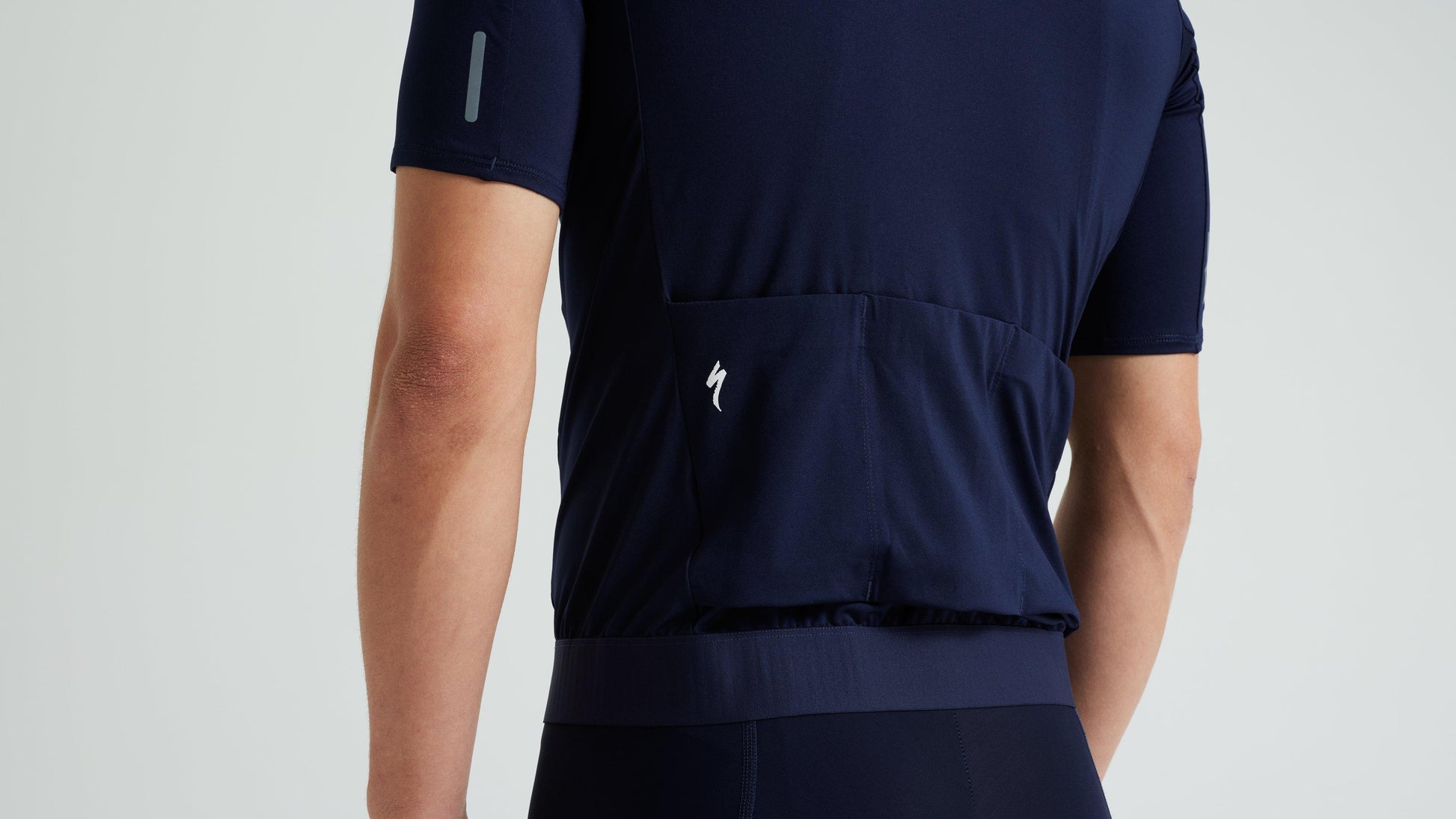 - Rear hem elastic with silicone gripper keeps the jersey in place.