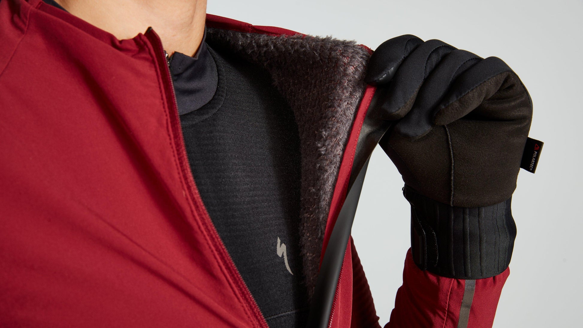 - Semi-Form Fit Road Jacket is close to the body for layering under outwear.
