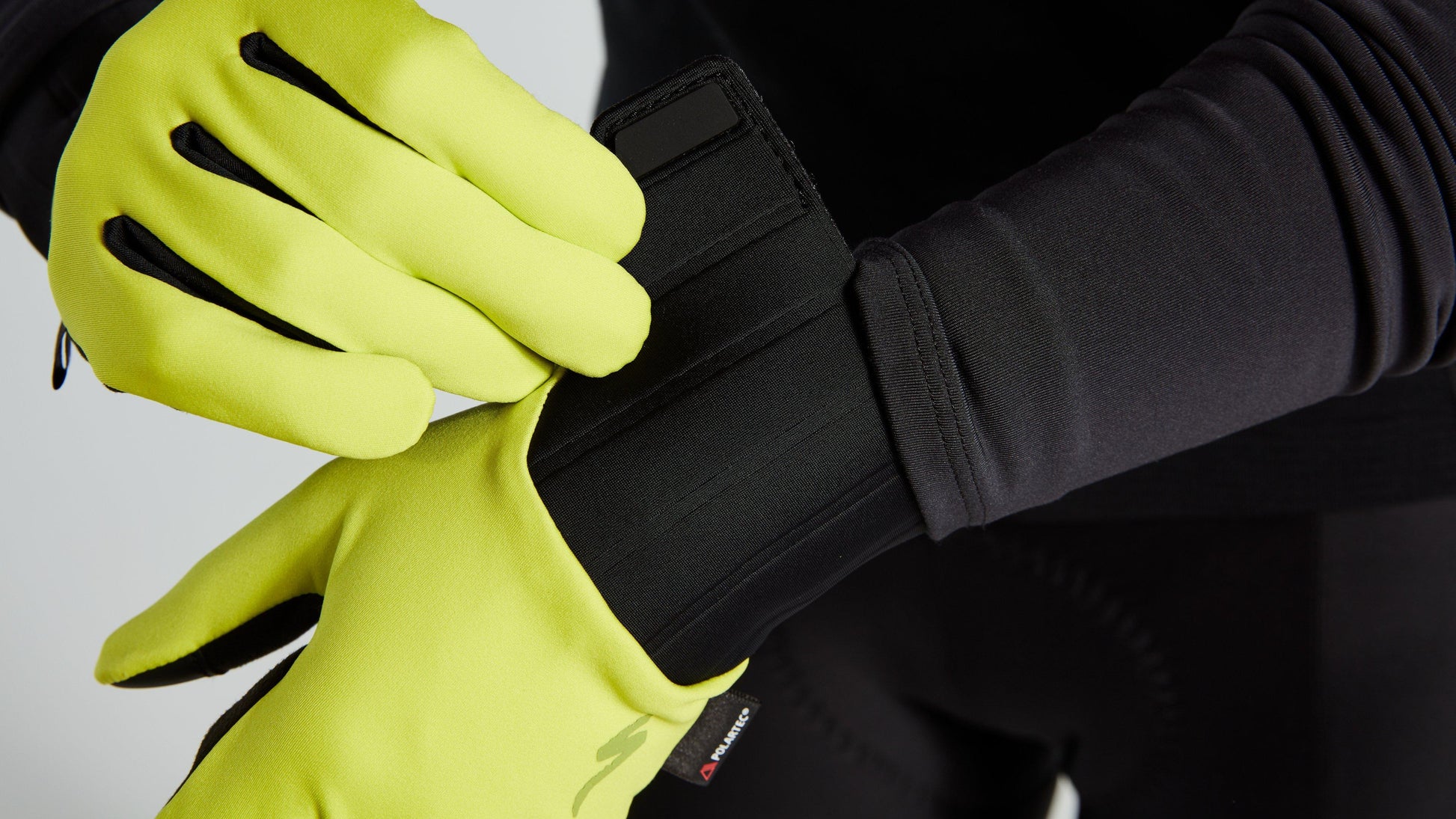 - Hyper Green Polartec® Neoshell® is paired with unique reflective trims to drastically increase your visibility to motorists 24-hours a day.