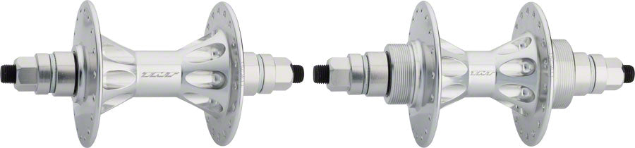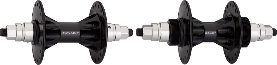 The TNT Revolver high flange hub set is the classic big brother to the Derringer. Just like it’s little brother the Revolver has also stood the test of time. Originally introduced in the late 1980’s, the Revolver incorporates the same exact internal workings as the Derringer but in a large flange design. Paired with a high quality freewheel, the Derringer offers an affordable alternative to cassette hubs. To this day the Revolver remains a trusted and proven product. Some key features include precision sealed bearings, chromoly axle, aluminum bearing collars, aluminum axle nuts, laser etched logo, and flip flop freewheel capability.- The TNT Revolver high flange hub set is the classic big brother to the Derringer. Just like it’s little brother the Revolver has also stood the test of time. Originally introduced in the late 1980’s, the Revolver incorporates the same exact internal workings as the Derringer but in a large flange design. Paired with a high quality freewheel, the Derringer offers an affordable alternative to cassette hubs. To this day the Revolver remains a trusted and proven product. Some key features include precision sealed bearings, chromoly axle, aluminum bearing collars, aluminum axle nuts, laser etched logo, and flip flop freewheel capability.