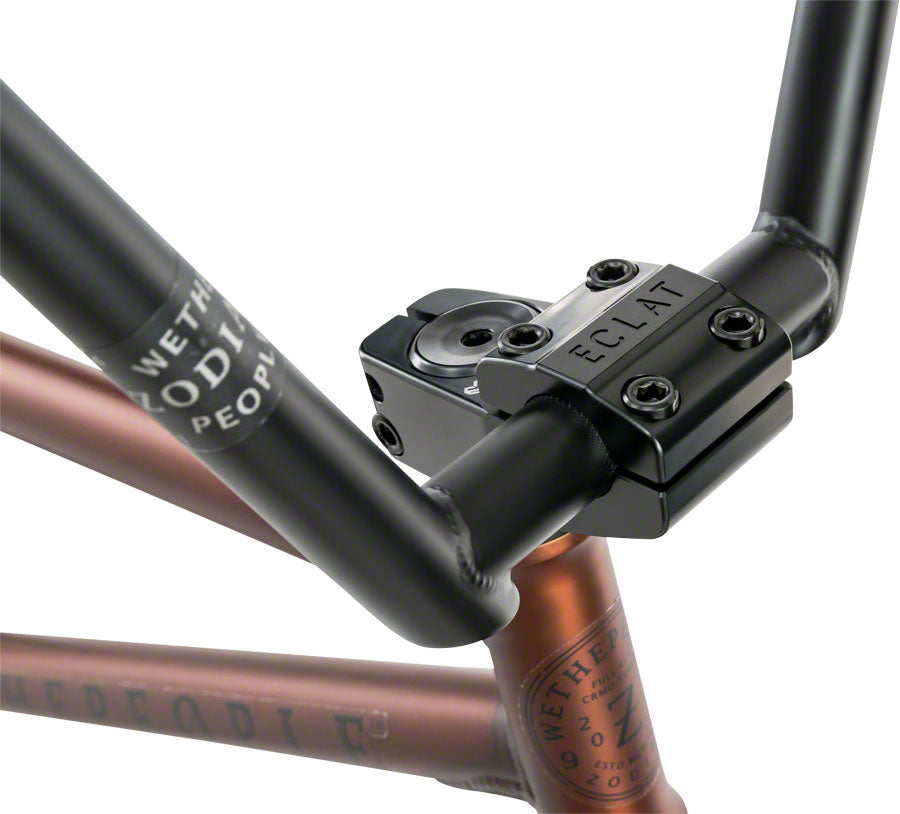 The Zodiac is a fully-fledged street warrior built up with some of the latest cutting edge parts from Eclat including a wheelset using the new Camber rims and Cortex hubs with Nylon hub guards. Based off the new-school tech setups that many of the Pro team are riding on, the Zodiac features the shortest chainstay ever used on a complete bike at 12.95”, and is paired up with shorter 165mm cranks, a 26mm offset fork and even an oversize 25.4mm 4pc bar and Eclat Slattery stem.- The Zodiac is a fully-fledged street warrior built up with some of the latest cutting edge parts from Eclat including a wheelset using the new Camber rims and Cortex hubs with Nylon hub guards. Based off the new-school tech setups that many of the Pro team are riding on, the Zodiac features the shortest chainstay ever used on a complete bike at 12.95‚Äù, and is paired up with shorter 165mm cranks, a 26mm offset fork and even an oversize 25.4mm 4pc bar and Eclat Slattery stem.