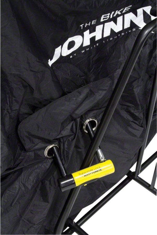 Made from water repelling, UV resistant nylon. This durable bike bag protects vehicles from a dirty bike as well as protecting a bike from the elements of outdoor storage. Side grommets allow for use of cable and U-locks when bike is covered. Fits all bikes.- Made from water repelling, UV resistant nylon. This durable bike bag protects vehicles from a dirty bike as well as protecting a bike from the elements of outdoor storage. Side grommets allow for use of cable and U-locks when bike is covered. Fits all bikes.