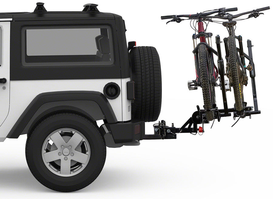 The BackSwing extension gives your hitch-mount rack the freedom to swing out of the way so you can access your tailgate. Easy to install, it locks in place while you’re on the road, then unlocks so you can swing your fully-loaded rack a full 90-degrees out of the way to grab your gear, cooler, dog - or just sit and enjoy some post–ride trailgating. Built strong, the BackSwing can hold up to 250 lbs, and works with just about any hitch-mount rack using a 2” receiver.- The BackSwing extension gives your hitch-mount rack the freedom to swing out of the way so you can access your tailgate. Easy to install, it locks in place while you’re on the road, then unlocks so you can swing your fully-loaded rack a full 90-degrees out of the way to grab your gear, cooler, dog - or just sit and enjoy some post–ride trailgating. Built strong, the BackSwing can hold up to 250 lbs, and works with just about any hitch-mount rack using a 2” receiver.